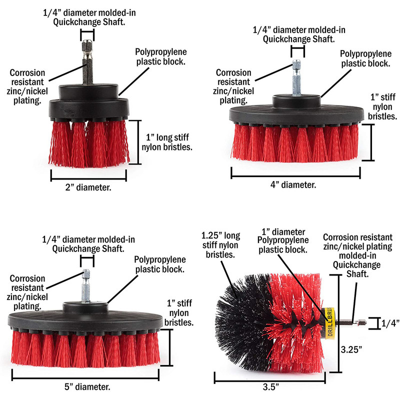 | Nama Produk: | 4 Pack Stiff Bristle Electric Bor Brush Sikat Pembersih Kamar Mandi Untuk Pembersihan Perabotan Batu | Ukuran produk: | 2 inci, 3,5 inci, 4 inci dan 5 inci |